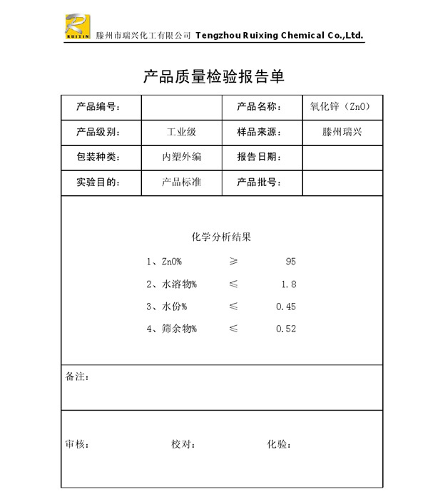 瑞興化工有限公司是生產(chǎn)氧化鋅的重點(diǎn)企業(yè),于2008年通過(guò)ISO9001:2008質(zhì)量管理體系認(rèn)證。“瑞興”牌氧化鋅在國(guó)內(nèi)擁有較大穩(wěn)定的市場(chǎng),并遠(yuǎn)銷東南亞、中東、中南美等國(guó)家和地區(qū),在國(guó)內(nèi)外享有較高聲譽(yù)。